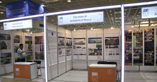 Пространство выставочного комплекса было разделено на 3 зоны – выставка стран – членов МСА – студенческая выставка – вставка строительных организаций и производителей материалов