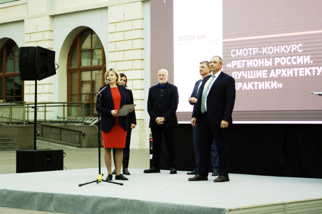 В разделе «Лучшие архитектурные практики» золото получили КГА Петербурга за эффективное использование конкурсной практики при формировании качественной среды, Томской области и региональной организации САР – за лучшие программы возрождения деревянного зодчества, Белгородской области за историко-туристический комплекс «Прохоровское поле», Ростовской области за линейный парк вдоль реки Темерник, который, по оценке жюри, можно назвать образцовым проектом – позитивным примером для других городов.