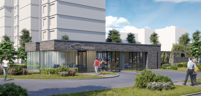 Проект автоматизированных парковок, совмещающих 2 подземных яруса и 10 надземных, а также офисы, кафе и функцию эстетического обогащения района в Люберцах, плотно застроенного жильем в недавние годы.