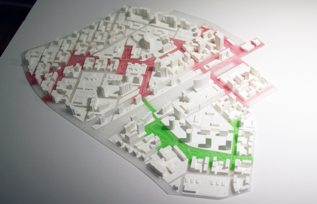 Но их нет, и возникает соблазн воспринять проекты эстетически, оценить, что впечатлило, в чем есть эмоциональный запас. Макеты при таком подходе превращаются в своего рода скульптуры, а планшеты – в картины, и да, все становится еще непонятнее. С этой точки зрения, как справедливо Григорий Ревзин, плакатнее всех проект мастерской Захи Хадид: в нем есть мощная и ясно читаемая пластическая идея воронки от взрыва. Проект не вязнет в мелочах, контексте и рассуждениях – он предлагает Москве визуализацию «ядерного потенциала», которым она обладает как мегаполис, но никак не может решиться его отчетливо и художественно его выразить, путаясь в миллионах квадратных метров в год. Этот же проект, впрочем, напоминает и «блюдце» Москвы в целом: как известно, капиталистический город растет как гора, в центре небоскребы, к окраинам понижается, а социалистический наоборот, в центре невысок, и повышается, как края блюдца, к окраинам. Три микрорайонных, то есть больших квартала района Кузьминки в проекте бюро Хадид превращаются в два таких блюдца: было бы любопытно, если бы Москва-«блюдце» когда-нибудь застроилась, следуя принципу почкования, блюдцами поменьше.