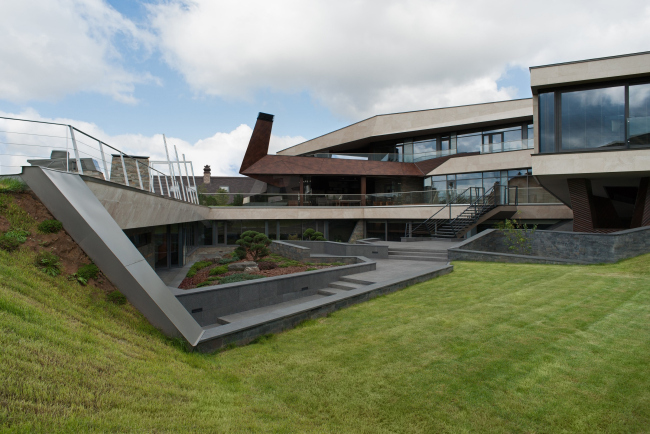 Словом, всё это требует кропотливой работы, как прагматической, с чертежами и на стройке, так и мыслительной – при такой подвижности формы нужно учесть множество деталей, намного больше, чем в «обычном» доме. Существенно, что архитекторы доводят свои идеи до завершения, обосновывают фантазию реальностью и воплощают без существенных упрощений. Что, видимо, тоже можно считать разновидностью дзен-практики. В результате же получаем остросовременный вариант римского домуса. Ну или дальневосточного «дракона», улегшегося посозерцать среднерусские пейзажи на склоне.