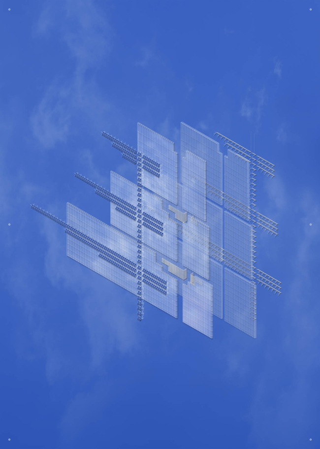 На седьмом этаже, на крыше «цоколя» расположена терраса с деревьями (5650 м2); такие же устроены на других уровнях сужения здания (эти точки названы «осиными талиями») – на 18-м и 28-м ярусах (2000 м2). Там высажены клены, березы, дубы разных видов, грабы, всего более 300 экземпляров. Кроме этих открытых зон (большую из них архитекторы сравнивают с «дворцовым парком»), в здании устроены зимние сады. На восточном фасаде взрезающая его вертикальная ось составлена из солнечных батарей и шахты панорамного лифта, а на западном – из батарей и смотровых балконов.