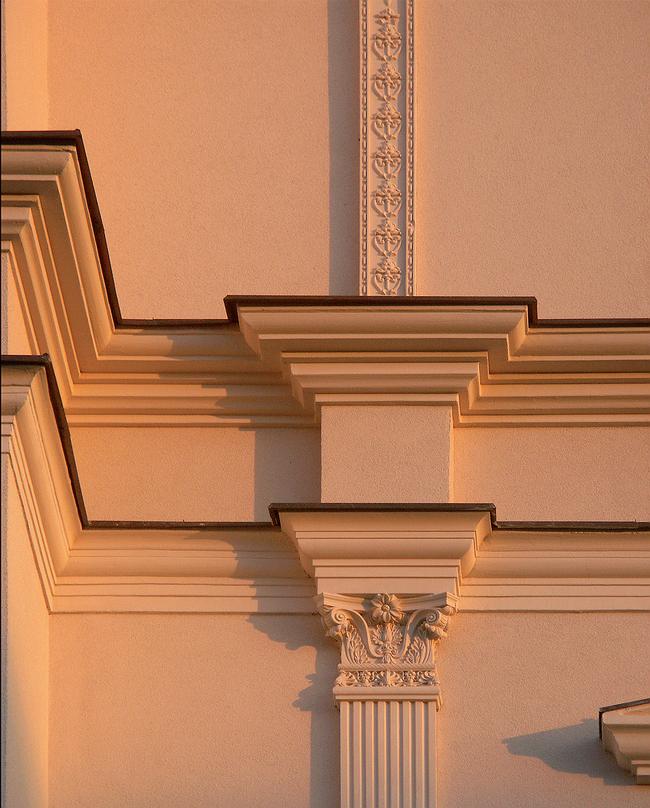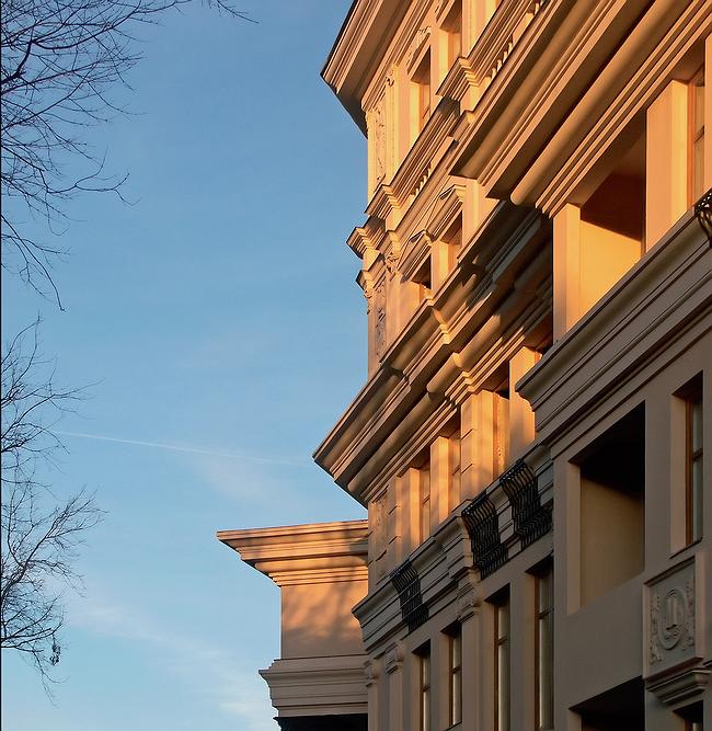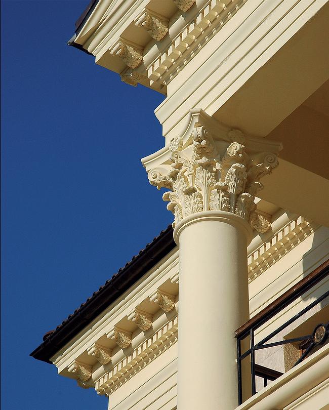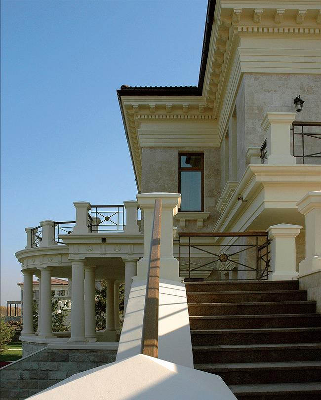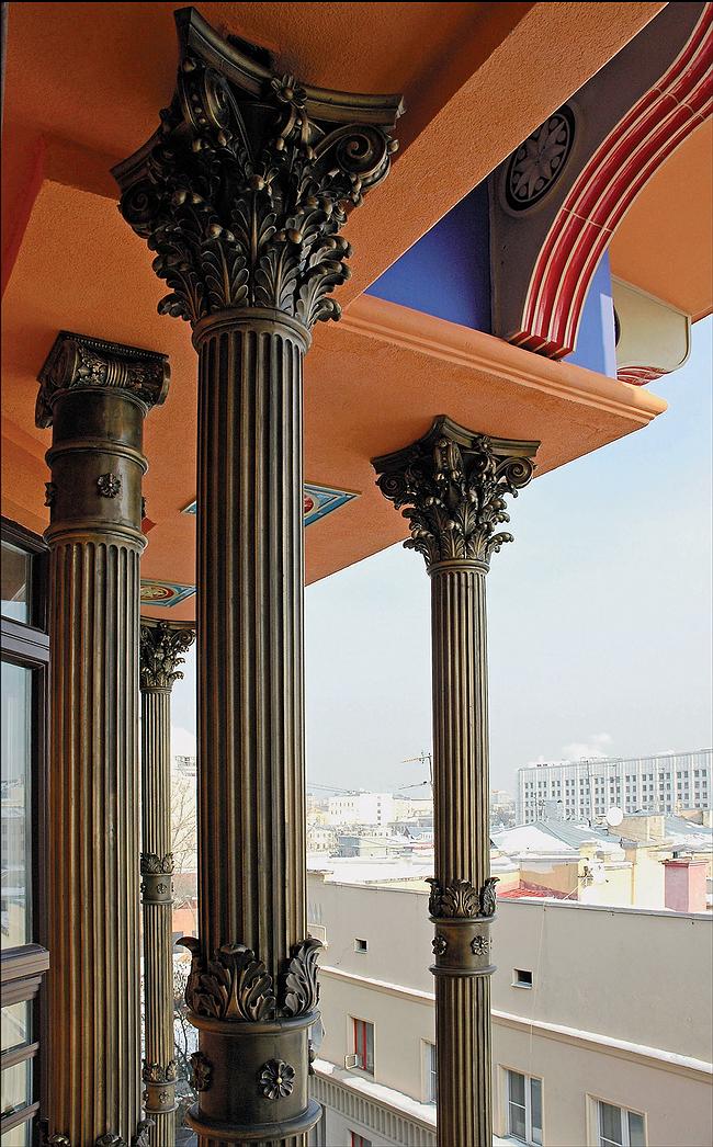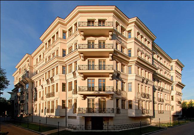 Я даже не про фонтаны спрашиваю, а про детские площадки, которыми застроена вся Москва. Ну, это совсем случайная история. Кажется, кто-то собирался быть депутатом, или еще что-то такое – в общем, ему нужно было почему-то сделать что-то хорошее для жителей. А меня знали в этом управлении коммунального хозяйства из-за фонтанов, потому, что они занимались реализацией проектов. Ну, и рекомендовали ко мне обратиться. Я придумал что-то вроде «Лего» -- конструктор, из которого можно собирать разные типы площадок. Детям же нравятся конструкторы. Но это оказалось очень удобным и в производстве, и довольно быстро зажило без меня. И живет уже больше десяти лет. Теперь это называется «конструктор профессора Белова», и так и висит в Интернете, но ко мне это уже не имеет отношения. Этим, действительно, застроены сотни московских дворов. Но никакой сознательной социальной задачи у меня не было. Просто вдруг возник какой-то необычного вида социальный заказ, а потом исчез -- у нас так часто бывает. В Москве ты, наконец, смог сделать архитектуру, которая тебе нравилась в детстве. Совсем не сразу. Это тоже вышло случайно. Это был мой первый серьезный заказ – дом в Филипповском переулке. Он тоже пришел из Моспроекта-2 – его там долго проектировали, все время все менялось, люди уходили, ну и , наконец, почти случайно досталось мне. И я долго, больше года, проектировал эту вещь. Она была по замыслу конструктивисткой. Я вообще-то кроме классики еще люблю архитектуру русского конструктивизма, и у меня много таких проектов, только они почему-то пока не реализуются. Не находят спроса. Ну и вот, был сделан серьезный проект, все согласовано, уже должны были строить, и вдруг все остановилось. Год стоит проект, а потом появляется новый заказчик, ПИК, Юрий Жуков. И он мне как-то по-человечески все объяснил. «Не нравится, – говорит, - мне эта архитектура. Она сухая. А я в этом доме жить хочу». Я оказался в сложной ситуации. Конечно, я должен был сказать, что вот, вы надо мной надругались, я сделал такой замечательный проект. И отказаться. Но мне понравился его подход ко мне. Я стал делать другой проект, и он меня страшно увлек. И так появился Помпейский дом.  «Помпейский дом» в Филипповском переулке © Михаил Белов