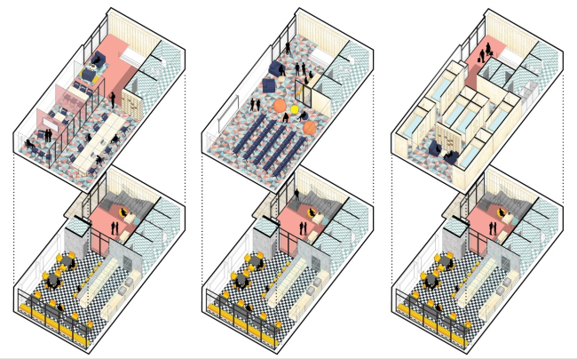 Шага в реализации программы получается примерно три. Первый – разработка программы во взаимодействии с местными сообществами и изучение местных ценностей: «запуск механизмов рекультивации локальной идентичности». Иными словами, формирование связей – сообщества, которое будет заниматься как исследованием города, так и последующей «рекультивацией». Второй шаг – создание туристического информационного центра, «который помимо бесплатных предлагал и платные услуги и и приносил прибыль его владельцу». Тут предложено несколько вариантов: от информационной стойки до центра в первом этаже и отдельного павильона, причем вариантов его наполнения масса: кафе, коворкинг, кинотеатр, читальня, лекторий, капсульный отель.