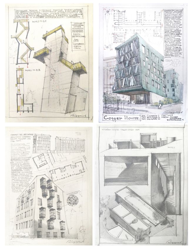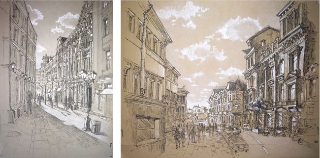 Лучшие работы участников конкурса можно увидеть на выставке «Архитектурные зарисовки», которая проходит в галерее ВХУТЕМАС с 10 по 30 мая.
