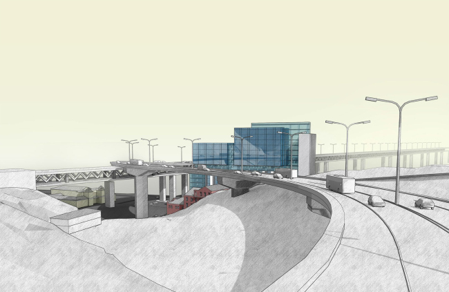 В бетонных секциях зернохранилища диаметром шесть метров уберут часть стен и пробьют окна: получатся похожие на капсулы универсальные помещения. Цилиндры надстроят семью дополнительными этажами. Здание станет выше метромоста, что в некоторой степени исправит диссонирующее доминирование последнего над окружением. Распределительная башня будет занята лестнично-лифтовыми узлами и инженерными коммуникациями. Площадь обновленного элеватора составит 22 000 м2.