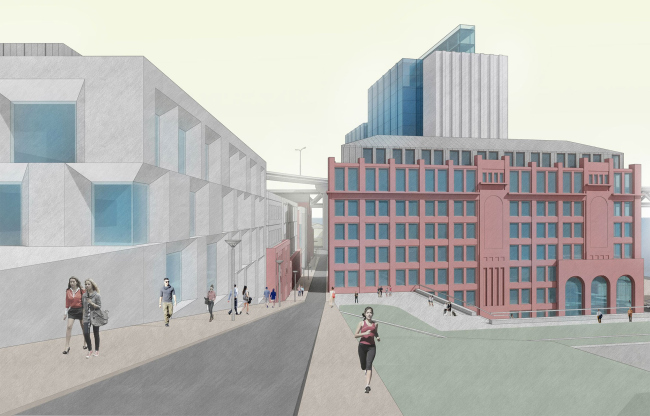 Бывшее общежитие для рабочих приспособят под медицинский центр, а лабазы – под офисы. «Пробелы» между ними заполнят офисное здание и жилой дом, что создаст единый фронт застройки вдоль улицы Гаршина. В первых этажах всех зданий комплекса –рестораны, торговля и обслуживание.