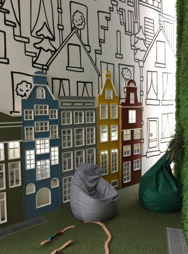 Рядом с вертикальным парком архитекторы спроектировали детскую зону для игр и место ожидания родителей.