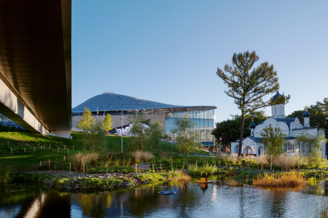 «Первоначально Валерий Гергиев предназначал для этого места проект Сантьяго Калатравы, – рассказывает Владимир Плоткин. – Но характерный для этого автора «гребень» не соответствовал концепции парка DS+R и не понравился мэру Москвы». В 2015 году проектированием занялось ТПО «Резерв»: работа оказалась очень напряженной и объемной, начиная от отслеживания всех нюансов и заканчивая множеством совещаний, проходивших едва ли не каждую неделю.