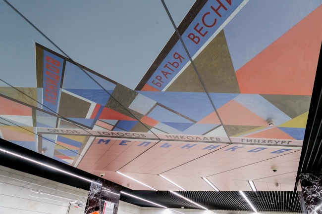 Никита и Всеволод Медведевы познакомили широкую публику с русским авангардом в монументальном оформлении станции метро Хорошевская. Известные всему миру имена и мотивы супрематизма и конструктивизма теперь можно увидеть прямо на потолке.
