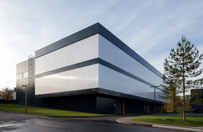 Съемочный павильон – глухой объем, там нужна абсолютная тишина, поэтому он облицован трехслойными бетонными панелями на железобетонном каркасе. «Аналоги – Cité du cinéma под Парижем и Pinewood studios в Лондоне и другие подобные павильоны, – все из бетона. – говорит Сергей Сенкевич. – Мы нашли резиновую матрицу Рэкли и добились мятой текстуры, поскольку гладкий бетон в России делать бессмысленно, качества не будет».