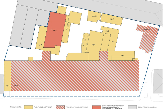 Полосатый вертикальный ритм надстроек продолжается в фасадах полностью обновляемых малых корпусов и складывается во вторую тему этого небольшого, по московским меркам, комплекса. Первую скрипку здесь, конечно, играет само реконструируемое здание: кирпич, разумеется, планируется вычистить и покрыть гидрофобным составом, а белые сейчас перемычки сделать черными. В принципе, концепция реконструкции хорошо вписывается в тенденции последних десяти, а может быть и более лет, хотя у нее есть два «персональных», а может быть, связанных с новыми веяниями, особенностей: во-первых, завод не переезжает, освобождая место для офисов или жилья, а остается на месте, хотя и в лице своих инженеров и дизайнеров – сохраняя таким образом функциональное разнообразие города. Во-вторых, предложенные надстройки несут в себе все черты архитектуры именно последних лет: они не заостряют контраст и даже усиливают «классический» вертикализм, но в то же время смотрятся свежо, не скрывая своего нынешнего происхождения. Ансамбль получается легко читаемым, ясным, но цельным. Даже любопытно, что это решение, в сущности, стало результатом реакции на множество ограничений, которые требовалось учесть в проекте.