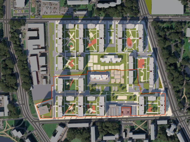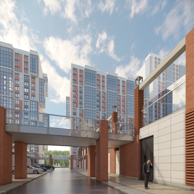 Если бы не эта башня, вероятно, проект и не стали бы выносить на обсуждение, поскольку первая очередь комплекса уже согласована и начинает строиться. Вторая очередь продолжает композицию и основные приемы: корпуса расположены меридионально, объединяются в полукварталы, в «сердцевине» зона отдыха и два детских садика: администрация района попросила не строить школу, потому что их здесь и так достаточно. Изюминка – дворы, которые приподняты на 4,5 метра, защищены от шума и ветра специальными экранами, а объединяют их «воздушные» мосты, по которым в случае чего может проехать и пожарная техника.