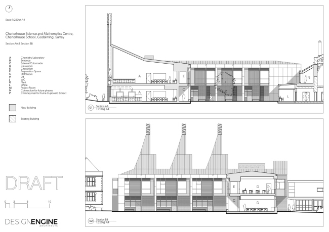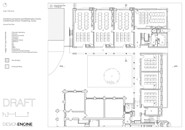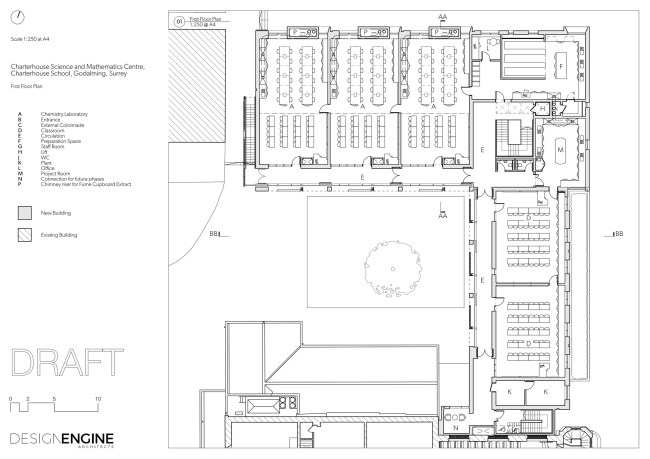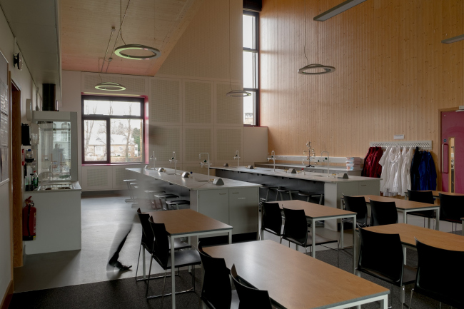Центр площадью 1800 м2 увеличил на 50% площадь помещений для преподавания математики и «негуманитарных» наук, позволив при этом соединить занятия математикой (пять классов) и химией (семь лабораторий), что послужит большей эффективности и междисциплинарности учебного процесса. В здании также есть два помещения для подготовки и одно – для «исследовательских проектов» учеников. Благодаря большей площади школьники теперь смогут проводить многодневные эксперименты: нет необходимости их прекращать в конце каждого урока, чтобы освободить место для следующего класса.