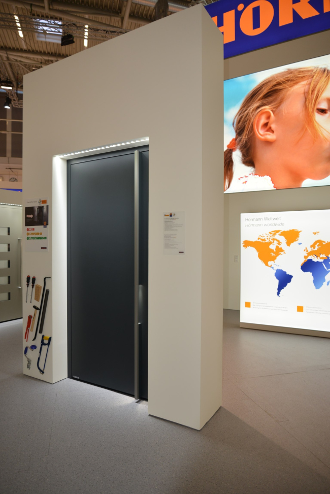 Каждые два года, в середине января, в Мюнхене открываются двери крупнейшей в мире строительной выставки BAU. Немецкий производитель ворот и дверей Hörmann также в этом году был представлен как крупнейший экспонент и презентовал на стенде площадью 1600 м² инновационную продукцию в области ворот, дверей, автоматики. Кроме того, компания Hörmann впервые на выставке представила новый вид продукции – большой ассортимент систем контроля въезда – болларды, шлагбаумы и платёжные терминалы.