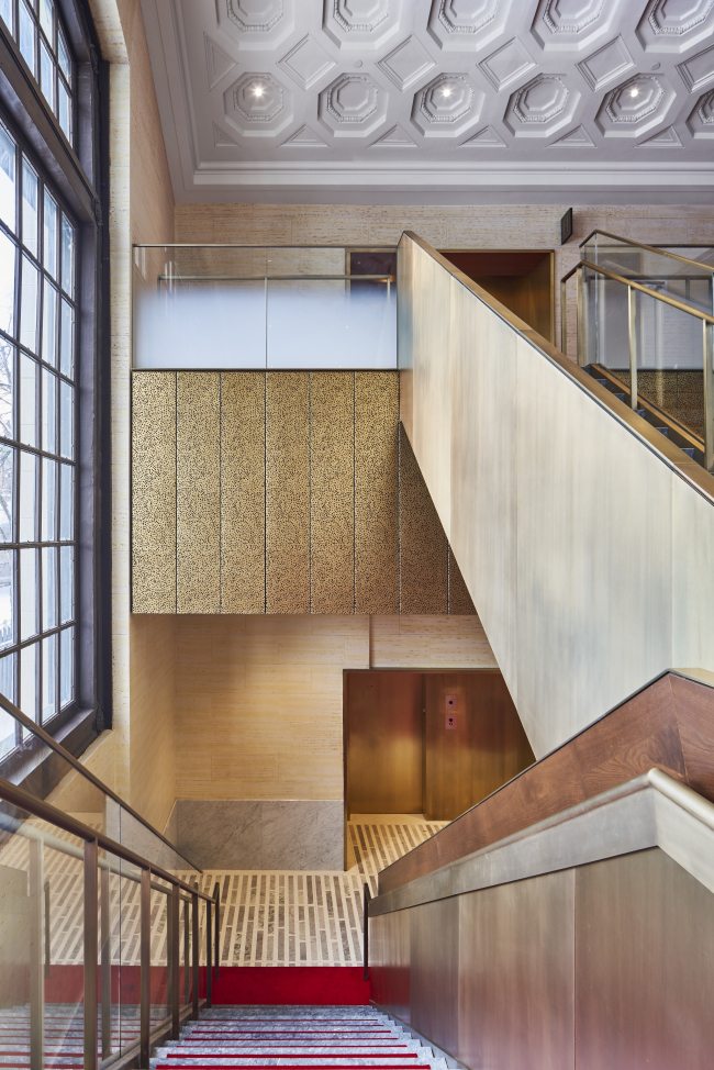 Пышные интерьеры вокзала (их тщательно отреставрировали) и важная представительская функция проекта интерпретированы авторами в форме разнообразного декора, соединяющего ремесленные традиции и новейшие технологии, продуманный выбор мотивов и материалов.