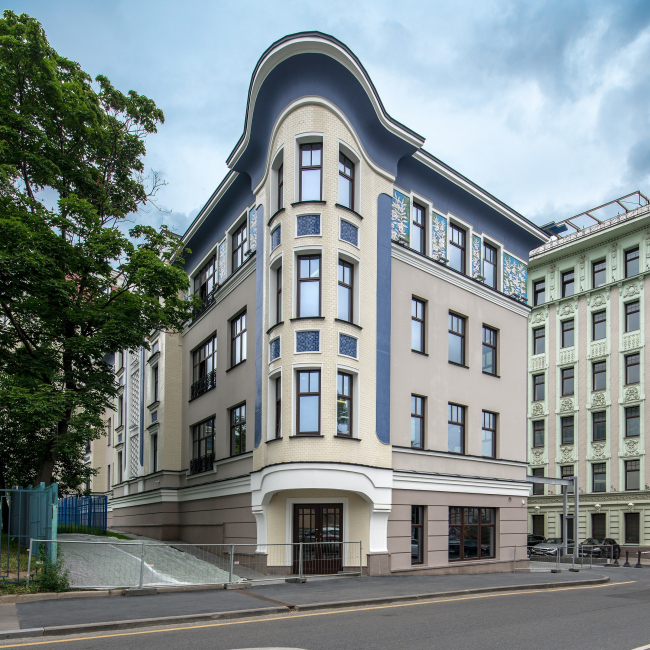 Корпус доходного дома, выходящий на Поварскую улицу, и когда-то вплотную примыкавший зданию с ротондой, был построен по проекту архитектора Николая Струкова в конце XIX века и как большинство доходных домов того времени, имел сдержанные фасады в стиле русского классицизма с элементами модерна. В этом здании в ходе реконструкции полностью восстановили исторический фасад, карнизы и декоративные элементы, произвели вычинку кирпичной кладки. Также были восстановлены и фасады двух корпусов доходных домов конца XIX века по Мерзляковскому переулку – один по проекту Виктора Гартмана, а другой – того же архитектора Николая Струкова, что и построил здание на Поварской.
