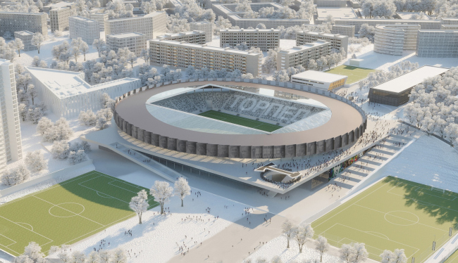 «Наш проект стадиона имени Стрельцова создаст новое сердце для района, который находится между улицей Восточная и Москва-рекой, – сердце, которое обеспечит единство между существующим районом и новыми жилыми комплексами, строящимися на набережной», – говорит Мишель Ремон, архитектор, чье бюро построило стадионы «Гастон Жерар» в Дижоне и «Огюст Делон» в Реймсе.