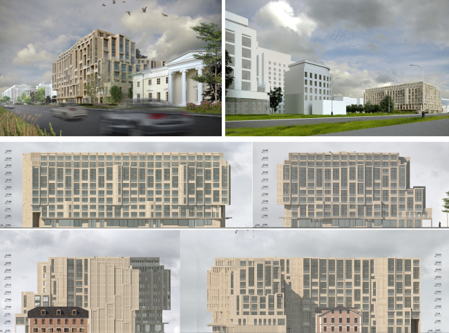 Доработанный вариант учитывает замечания: новый дом послушно отступил от красной линии, корпус исторического здания остался на месте. Секция, выходящая на Большую Невку стала более протяженной, а Воспитательный дом, который приспособят под детский сад, спрятался во дворе. Аттик увеличился на один этаж, что дало возможность спланировать двухуровневые квартиры.