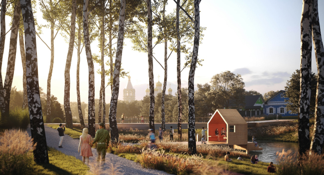 Городской парк Правдинска планируется сделать не только более комфортным для отдыха местных жителей, но и привлекательным для туристов, поэтому задача стояла – сохранить и подчеркнуть историческую идентичность места. Согласно предложенной концепции, здесь должны появиться гостиничный комплекс, ресторан, ремесленные мастерские, набережная, смотровая площадка, а также памятник Георгиевскому кресту.