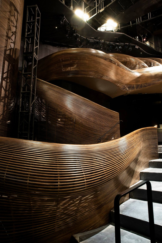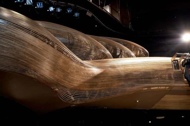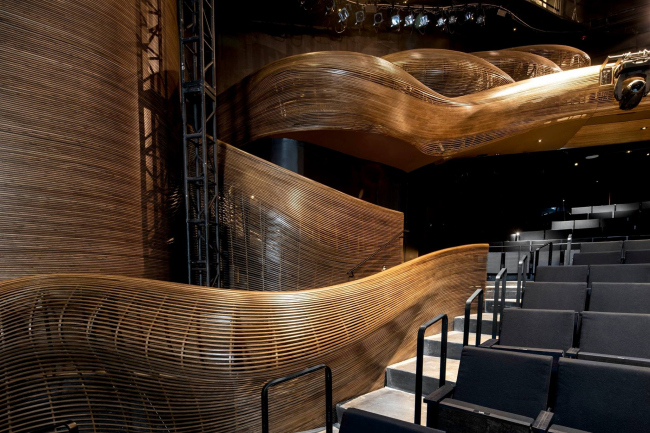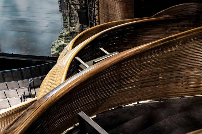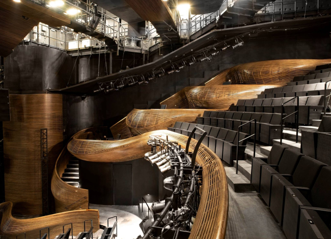 Авторы проекта признаются, что чувствовали ответственность за устранение «архитектурной дискриминации» в зале. Размыть видимые различия между зрительскими зонами и ярусами им во многом удалось с помощью непрерывных легких линий деревянных конструкций, а также за счет плавного каскада балконов.