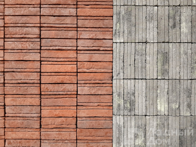 Кирпич Dubio поставляется в двух различных форматах: с ассиметричной полосой-пропилом в верхней части кирпича, и с двумя симметричными темными линиями, которые разделяют кирпич на три равные части.