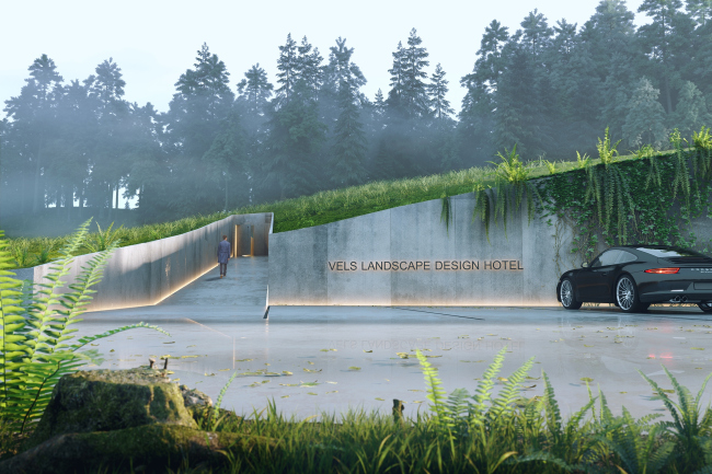 Отель «Велс», предложенный архитекторами Ad Hoc, расположен по московским представлениям очень далеко – в северном углу Пермского края, в предгорьях чуть западнее Уральских гор. Так и хочется легкомысленно заявить, что «машины не ходят туда», но машины, нет, ходят: место расположено рядом с небольшим поселком Велс, с населением около 200 человек, с пристанью и школой. От поселка до ближайшего населенного пункта покрупнее, в нем 400 жителей, 45 минут на машине. До Перми 6 часов. Кругом лес, местные дороги ведут в основном в урочища – то есть пункты ненаселенные, заброшенные, хотя с привлекательными названиями, к примеру, Приисковое. Сейчас это, в целом совершенно дикое, место – один из районов экстремального туризма, сплавов по реке с пометкой «корпоративный отдых». Предложение Ad Hoc развивает тему, поскольку архитекторы спроектировали не просто гостиницу в лесах, а туристический маршрут, южная и стартовая точка которого – Пермь, а самая дальняя – «Вишерский заповедник», расположена в примерно 70 км к северу от гостиницы. Маршрут назван «Солёное ухо», гостиница – самая капитальная постройка из предлагаемых на нём.