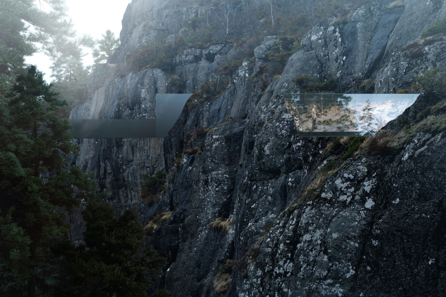 Одна из особенностей отеля – это комната тишины, выступающая из камня в лесу. Такая комната предназначена для того, чтобы человек мог остаться на какое-то время наедине с собой, своими мыслями и найти вдохновение. Это особенно важно для творческих людей. Мост, ведущий к этой комнате, начинается из глубины леса и врезается в камень смотровой площадкой. Путь к этому месту специально никак не акцентирован. Только прогуливаясь по лесу можно случайно найти тропу, которая ведет к этой комнате. Тот кто ищет, всегда найдет.