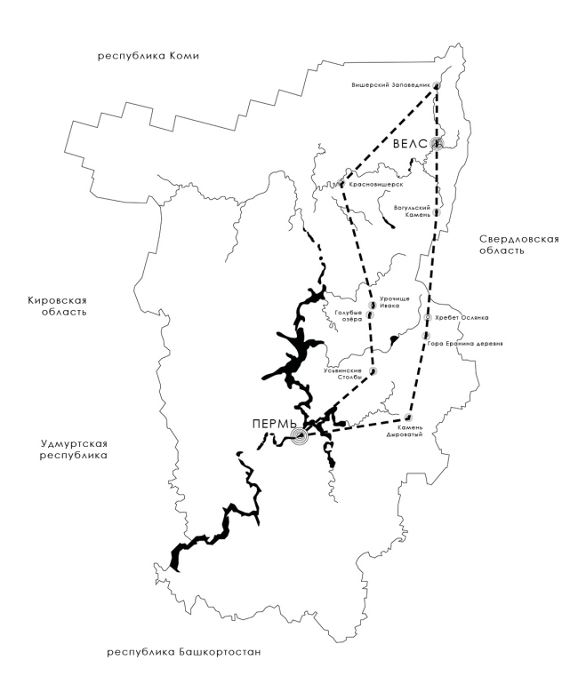 Одной из точек на карте является посёлок Велс, где мы и предложили проект ландшафтного отеля. Данное место находится вблизи самых живописных мест Пермского края.