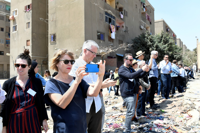 Сам же Каир поражает контрастами: в нем есть старые, почти итальянские, классические кварталы и райские сады на холмах, но в значительной степени старый Каир состоит из так называемых неформальных поселений, в которых живет 60 % горожан, то есть 12 миллионов человек. Это здания из монолитного бетона с кирпичным заполнением, недостроенные девелоперами и занятые жителями, которые не имеют электричества, воды, канализации, не платят квартплату. Поэтому мусор лежит прямо на улицах в больших количествах, напоминая о сути нашей цивилизации потребления. Эти трущобы часто растут вокруг мусорных полигонов с мусоросжигательными заводами. Жители, как правило, работают на сортировке мусора и живут поблизости. Снабжение продуктами и прочая регуляция осуществляется местными сообществами. Передвигаются люди пешком, на верблюдах и ослах – ведь у них все необходимое в пешеходной доступности. Парадоксально, но это очень устойчивые сообщества, так как они потребляют мало энергии и ничего не стоят государству. Гости форума посетили несколько таких поселений в рамках мастерской «Новый вернакуляр», завязывая носы шарфами, чтобы не вдыхать ядовитых выбросов МСЗ. Нельзя было в этот миг не полюбить Россию, которая метет и моет улицы каждый день во всех городах, в бедных и богатых районах. Если на этот раз в Египте нам предъявили новый образ экологии, то – спасибо, не надо.