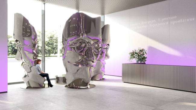 Осмысляя интерьер с точки зрения идеологии и философии, архитекторы также предложили оформить его цитатами ученого, которые не только проецируются на стену, но и нашептываются приходящим в общественных зонах.