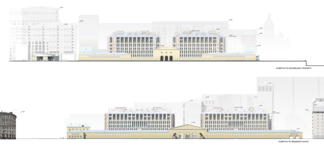 Последний аргумент, продиктованный интровертным характером получившейся застройки, которая фактически представляет собой «город в городе» с периметральными жилыми корпусами, встроенными внутрь периметра исторических стен, несколько противоречит идее оживленной торговли и развитой сервисной инфраструктуры на внутренних торгово-пешеходных улицах, но только жизнь покажет, насколько гостеприимным окажется будущий комплекс и не падут ли благие идеи архитекторов, назвавшие этот проект «город с открытыми воротами», под давлением коллективного мнения жильцов, заинтересованных в приватности. Второй вызовМетодология проектирования от genius loci участка предопределила и подход к стилистическому оформлению будущего жилого комплекса. Наличие «собственных» классических памятников, конструктивистская трансформация, пережитая ансамблем в 1930-е и, наконец, соседство с «псевдонеоклассической» застройкой Московского проспекта, давали широкий диапазон для творческих поисков. Образ комплекса должен был представлять собой органичный сплав трех архитектурных традиций Санкт-Петербурга, что делало решение задачи более интересным для архитекторов «Студии 44», а результат – в некоторой степени программным, воплощавшим авторскую трактовку «петербургского стиля», дискуссии о котором продолжаются в северной столице уже не первое десятилетие. И решение этой задачи стало еще одним вызовом для команды.