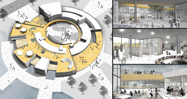 По результатам исследования было выполнено пять экспериментальных проектов:- библиотека на границе природного комплекса с низким градостроительным потенциалом