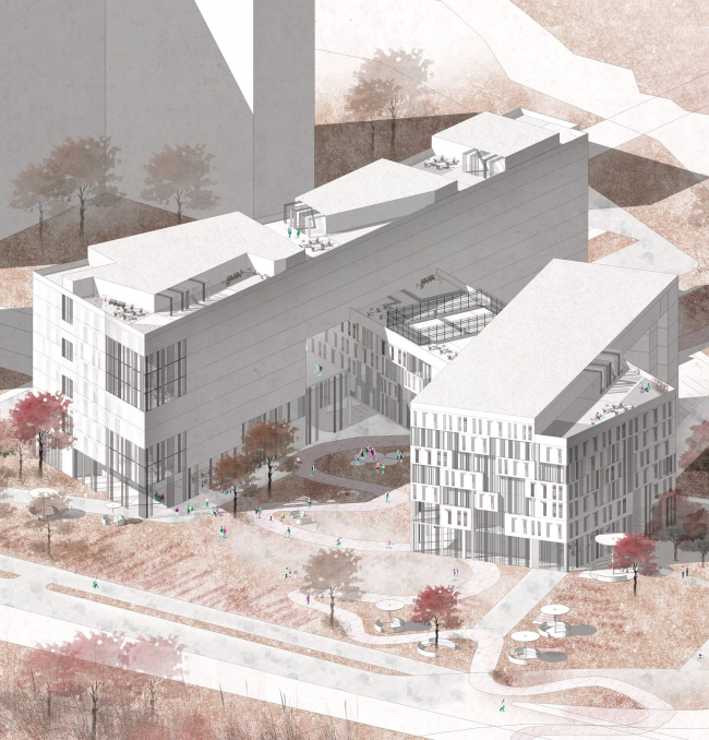 Третий и четвертый проекты демонстрируют элементы взаимодействия кластера с крупнейшим городом. Для итогового проекта была избрана медицинская тематика, так как на данный момент медицинские междисциплинарные исследования формируют наиболее сложную структуру совместного рабочего пространства и популяризации научного медицинского знания и здорового образа жизни. В проект включены пространства, открытые городу: спроектирована выставочная зона с павильонами и презентационными площадками, кафе и многофункциональным залом, диагностическим центром.