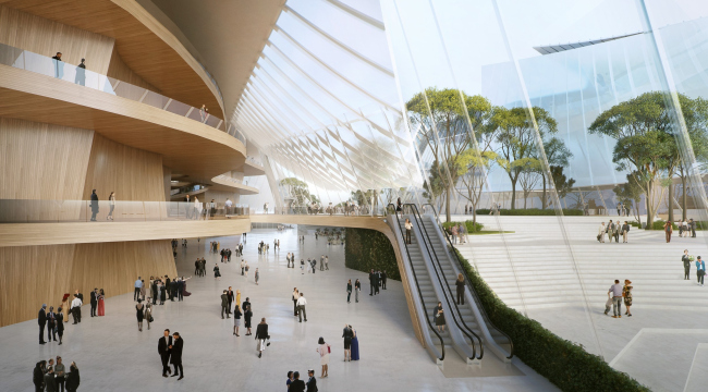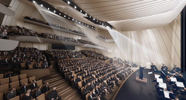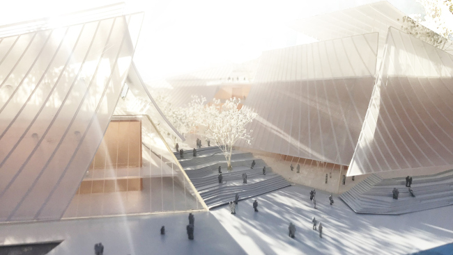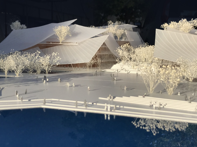 Архитекторы планируют придать стеклу сходство с развевающейся шелковой тканью: отражаясь в воде, эти «паруса» создадут романтический образ театра. Одновременно такие фасады будут затенять помещения, при этом пропуская достаточно солнечного света. Зимой они создадут «парниковый эффект», нагревая интерьер, а летом помогут его вентилировать.