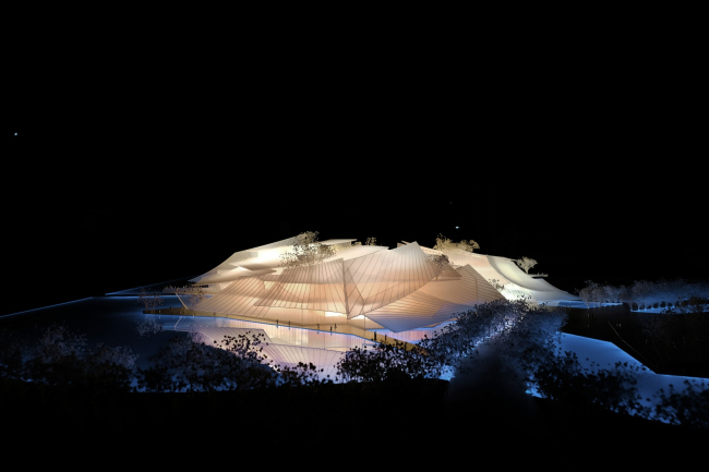 С правым берегом театр свяжет автомобильная дорога, с левым – пешеходные мостики. Вокруг здания создадут озелененные общественные пространства с видами на город и окружающие его ландшафты.