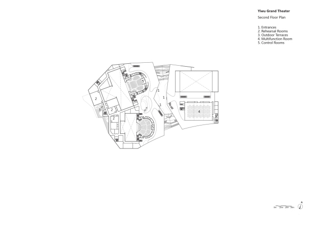 В конкурсе на проект нового театра бюро Ма Яньсуна обошло таких соперников, как Арата Исодзаки, Кристиан де Портзампарк и gmp. Проект MAD предполагает расположить здание на воде, на фоне горной гряды. Оно должно напоминать традиционное судно – джонку, в прошлом – характерный транспорт для торговцев Иу. Роль парусов играет полупрозрачные стеклянные фасады, своим силуэтом похожие и на характерный для этого региона, Цзяннань, свес кровли.