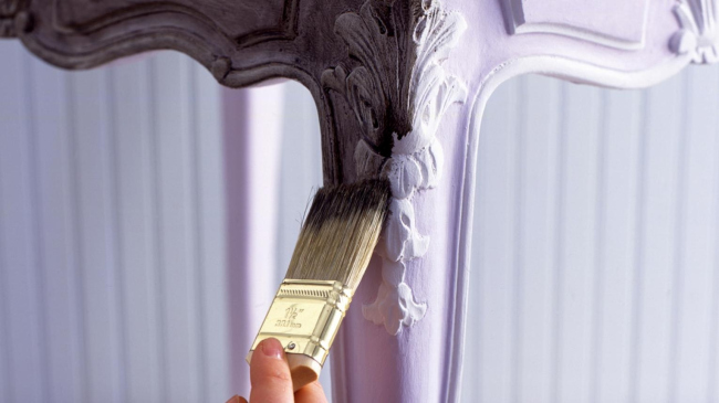 Краска подходит и для старой мебели, но с ней лучше поработать предварительно: снять ручки и другие выступающие детали, слегка зачистить поверхность шкуркой среднего зерна, протереть влажной тканью и оставить сушиться. Для тонкой работы может понадобиться 2-3 сантиметровая кисть, но обычно для любых задач достаточно 8-сантиметровой.