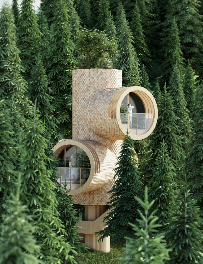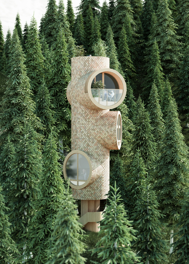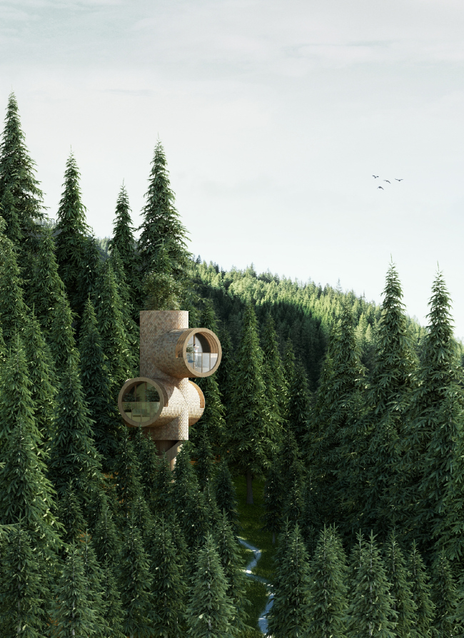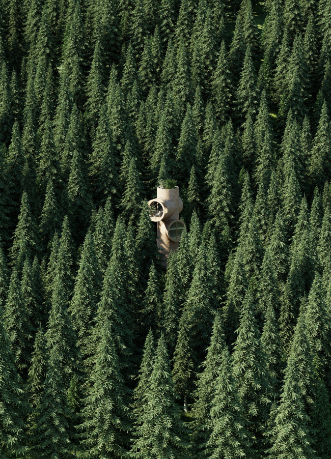«Мы скорее хотели создать уникальный образ, нежели обычное здание. Причудливый объект, который становится частью дикого леса, – поясняют авторы проекта. – Такая причудливость способна порождать чувства и эмоции. И, возможно, это то, чего не хватает в архитектуре нашего времени».