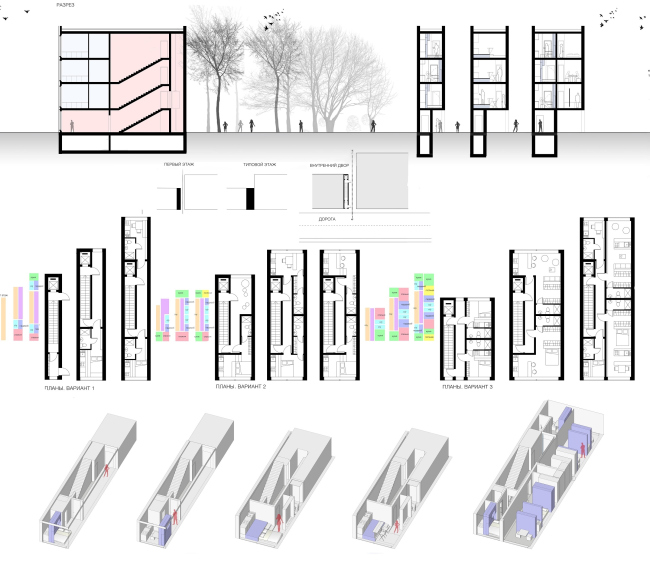 Множество вариантов подхода к жилью и инфраструктуре, исследование того и другого – в работах выпускников группы Андрея Некрасова и Александра Цыбайкина, среди имен которых на этот раз много иностранных.