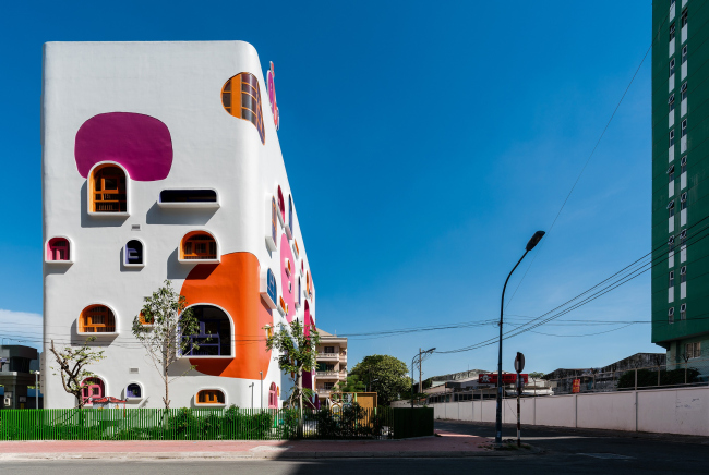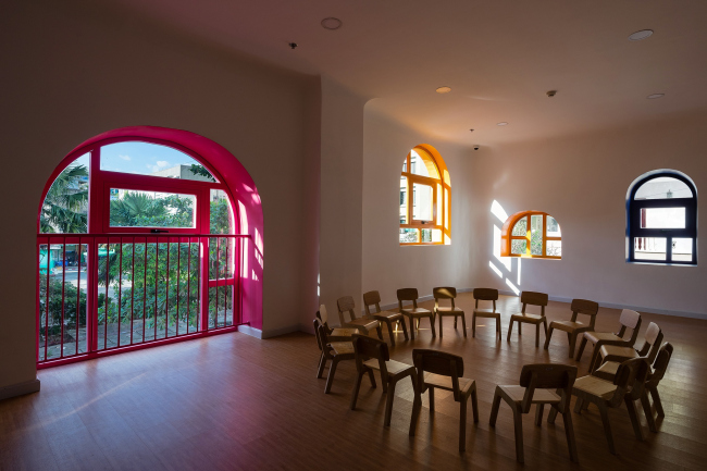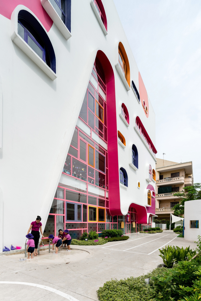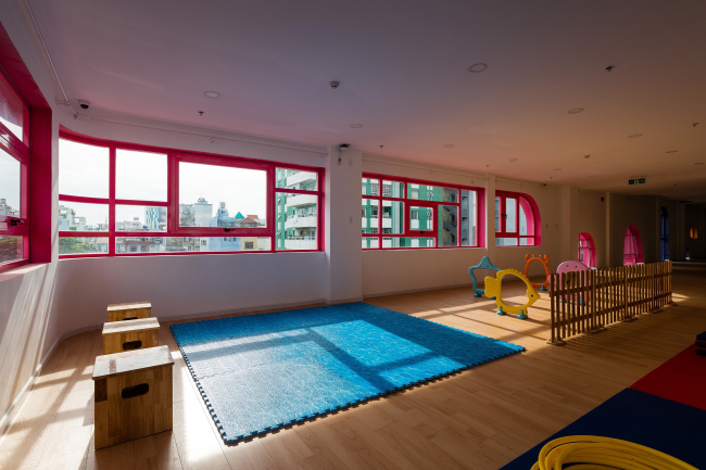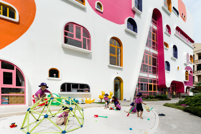 Îêíà çäåñü, êàê îáúÿñíÿþò àðõèòåêòîðû, «ïîáóæäàþò ýìîöèè, âîîáðàæåíèå è ëþáîïûòñòâî, óñòàíàâëèâàþò ïðÿìûå îòíîøåíèÿ ìåæäó äåòüìè, èãðàþùèìè âíóòðè, è æèâîé, ïîñòîÿííî ìåíÿþùåéñÿ ñðåäîé âî âíåøíåì ìèðå».Ýëèòíûé äåòñêèé ñàä «Ñàéãîí» â Õîøèìèíå© Quang Tran. Ôîòîãðàôèÿ ïðåäîñòàâëåíà KIENTRUC O
