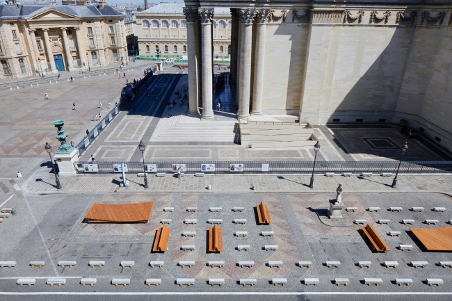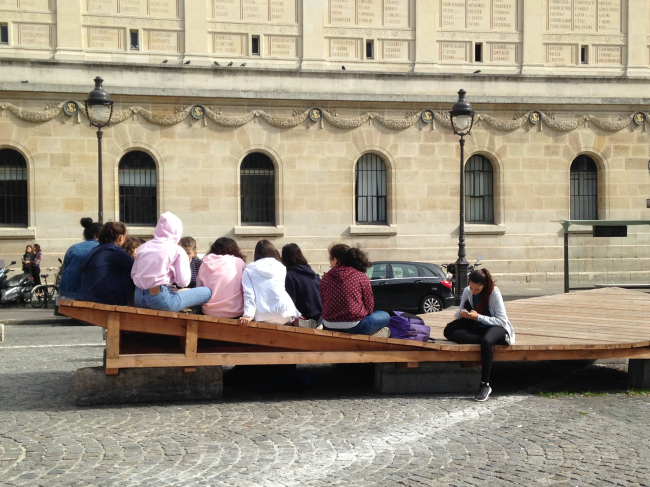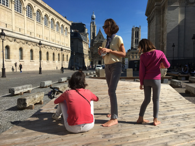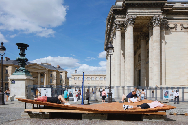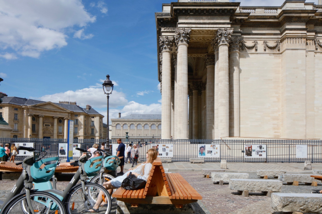 Огромный Пантеон служит усыпальницей выдающихся людей Франции; площадь вокруг него воспринималась как созданная по остаточному принципу. По ней двигались или по периметру, или обходили за оградой Пантеона. Архитекторы стали следить за ситуацией и выяснили, что на площади в основном проводят время учащиеся расположенных неподалеку вузов и коллежей, а также посещающие Пантеон туристы. Жители окрестных кварталов и горожане иных возрастных и социальных групп там не появлялись. Также было замечено, что женщины, в отличие от мужчин, почти не проводят там время в одиночку, то есть надо было придумать, как сделать пространство комфортным и привлекательным для них.