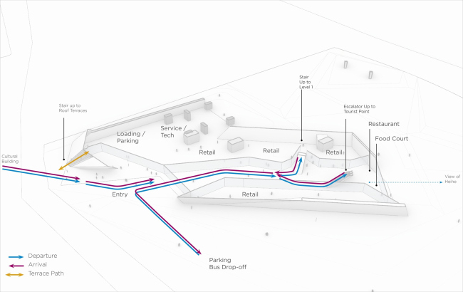 Среди компонентов проекта UNStudio – интуитивно понятные маршруты для прибывающих и уезжающих пассажиров сквозь коммерческие и культурные пространства, а также озелененная терраса на кровле, с которой – как и из интерьеров – откроются виды на реку и Хэйхе.