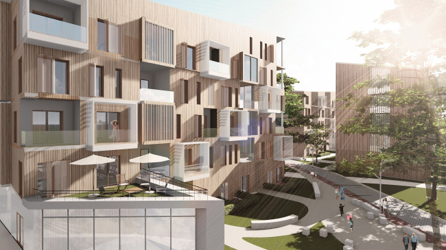 Реконструкция от команды Crescendo – это попытка внедрить плюсы экологичной загородной жизни в городскую среду. Главная цель «Городской виллы» – удобство жителей + экологический баланс. В решении «миланской задачи» студенты следовали принципам мультикомфорта от «Сен-Гобен»: