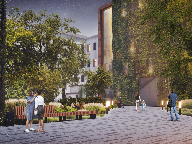 Двор рядом с музеем Достоевского в Кузнечном переулке: существующее положениеПредоставлено: Евгений Герасимов и партнерыДвор рядом с музеем Достоевского в Кузнечном переулке: существующее положениеПредоставлено: Евгений Герасимов и партнерыДвор рядом с музеем Достоевского в Кузнечном переулке: существующее положение и предполагаемое расположение нового корпусаПредоставлено: Евгений Герасимов и партнерыДвор рядом с музеем Достоевского в Кузнечном переулке: существующее положениеПредоставлено: Евгений Герасимов и партнерыДвор рядом с музеем Достоевского в Кузнечном переулке: существующее положение и предполагаемое расположение нового корпусаПредоставлено: Евгений Герасимов и партнерыДвор рядом с музеем Достоевского в Кузнечном переулке: существующее положениеПредоставлено: Евгений Герасимов и партнерыДвор рядом с музеем Достоевского в Кузнечном переулке: существующее положениеПредоставлено: Евгений Герасимов и партнерыДвор рядом с музеем Достоевского в Кузнечном переулке: существующее положениеПредоставлено: Евгений Герасимов и партнеры Опубликованные сегодня рендеры проекта сквера во дворе музея показывают: сохраненные деревья, скамейки и пучки актуальных злаковых растений вокруг них, и – что немаловажно – полностью скрытые вертикальным озеленением фасады домов. Их два: один принадлежит новому корпусу музея, другой корпусу в глубине двора. Два небольших одноэтажных объема также отданы вьющимся растениям, и двор оказывается, таким образом, со всех сторон зеленым, компенсируя часть утраченных при строительстве насаждений.