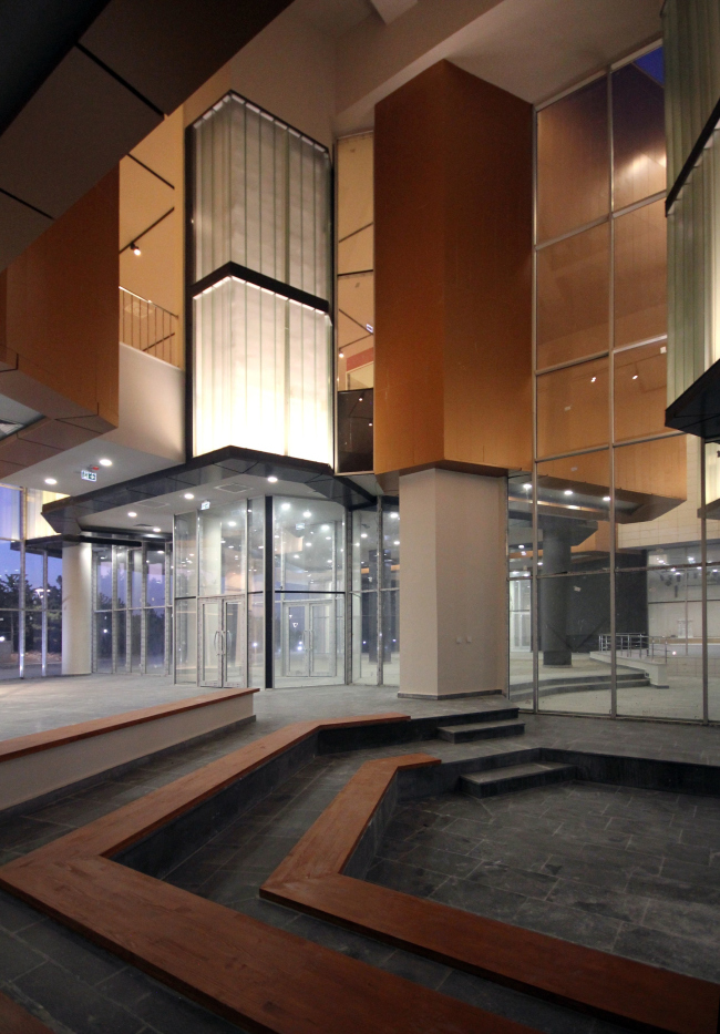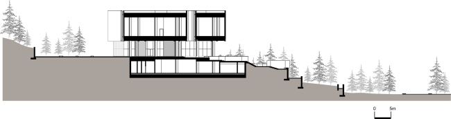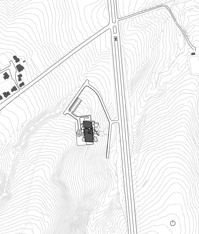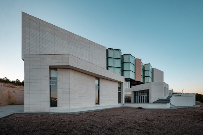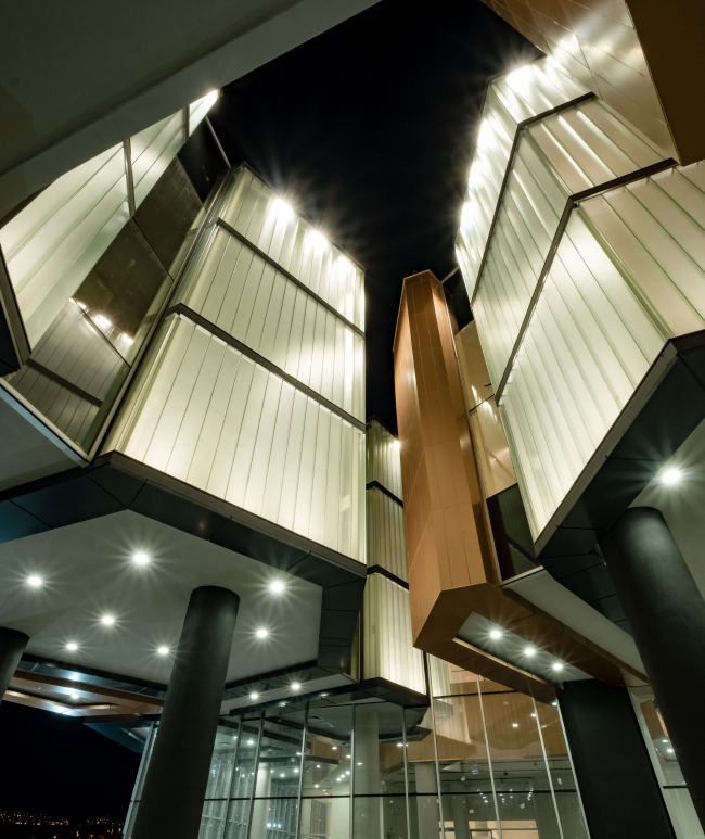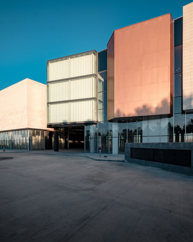 Помещенное на возвышенность здание включает в себя собственно музей (выставочные пространства) и исследовательский центр (лаборатории, научные коллекции, кабинеты сотрудников и руководства, конференц-зал). Эти две части получили каждая свой вход – друг напротив друга на небольшой «плазе», однако в интерьере они соединены.