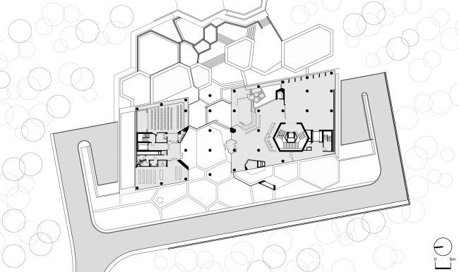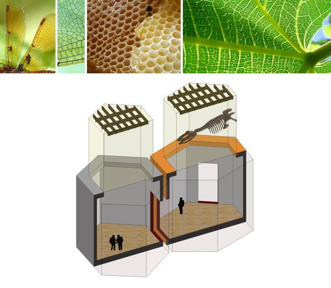 Сам проект основан на серии геометрических ячеек – они отвечают многочисленности подразделов у междисциплинарной темы биоразнообразия, но связаны между собой – как того требует функциональная программа.