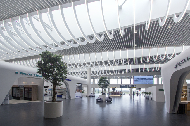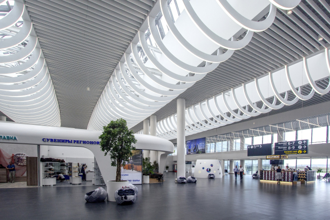 В 2017 году холдинг «Аэропорты Регионов» провел несколько конкурсов на интерьеры ключевых зон терминала: зала повышенной комфортности и VIP-залов для международных и внутренних рейсов. , две – OFFCON с концепцией «Вода» и VOX Architects с проектом «Небо», уже имеющие опыт создания представительских интерьеров и третья – Kosmos Architects, неожиданно ворвавшаяся на этот элитный рынок с провокационным дизайном бизнес-лаунжа международных рейсов, получившим название «Палаты».
