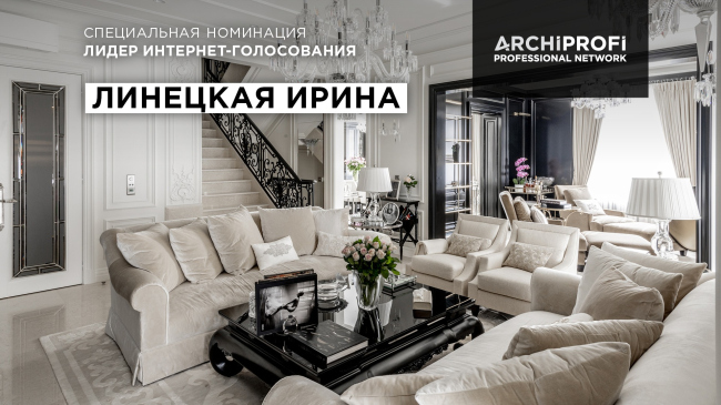Кубок победителя интернет-голосования завоевала Ирина Линецкая, автор проекта квартиры площадью 471 кв. м в Москве.
