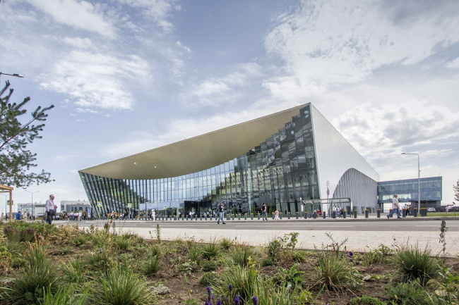 Генпроектировщик: ГК “Спектрум” Технология: WP-arch Интерьер VIP-зон: VOX architects, OFFCON, KOSMOS architects Входная площадь: NOWADAYS office Медиа-музей: NOWADAYS office, RADUGA design + Макрофабрика, Saga Ландшафт: «Архитектура живой формы»